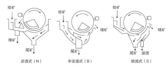 其原理是當(dāng)?shù)V漿進(jìn)入磁場(chǎng)區(qū)時(shí),其中強(qiáng)磁性礦物被吸附在圓筒表面,弱磁性和非磁性礦物被甩掉排出,而吸附在圓筒表面的強(qiáng)磁性礦物隨圓筒旋轉(zhuǎn),被帶出磁場(chǎng)區(qū),用沖洗水沖入精礦槽中,完成分選作業(yè)。